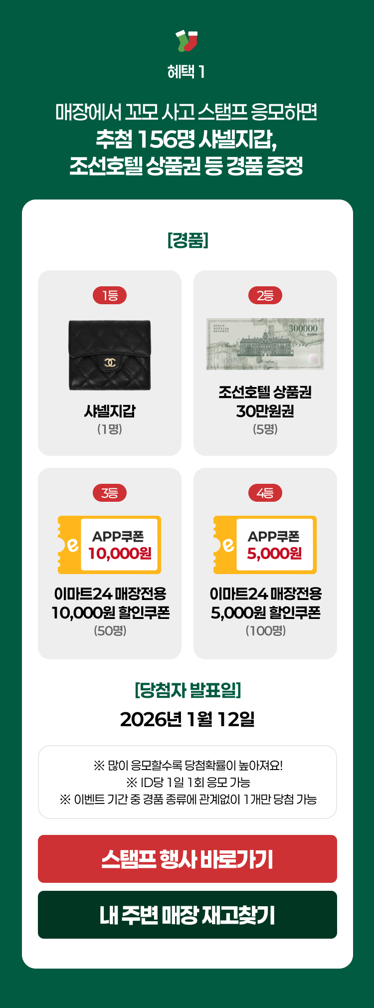 - 당첨자 발표일 : 1월 12일