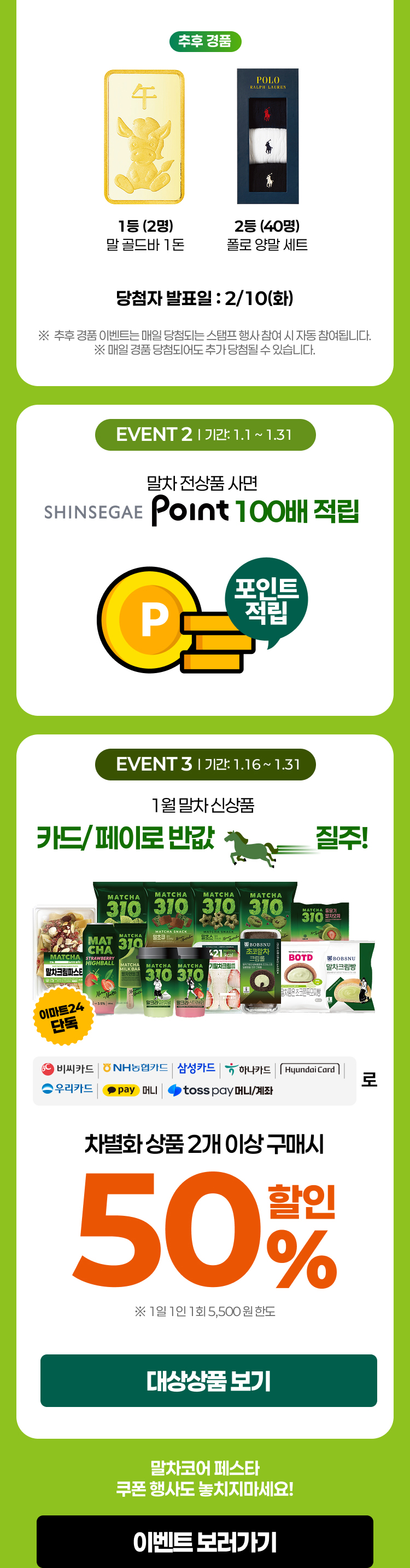 - 추후 추첨 이벤트는 이벤트 종료 후 2/10(화) 당첨자발표 페이지에서 확인 부탁드립니다.