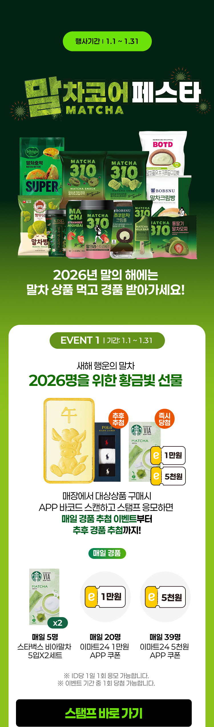 - 자세한 유의사항은 스탬프 행사 페이지에서 확인 부탁드립니다.