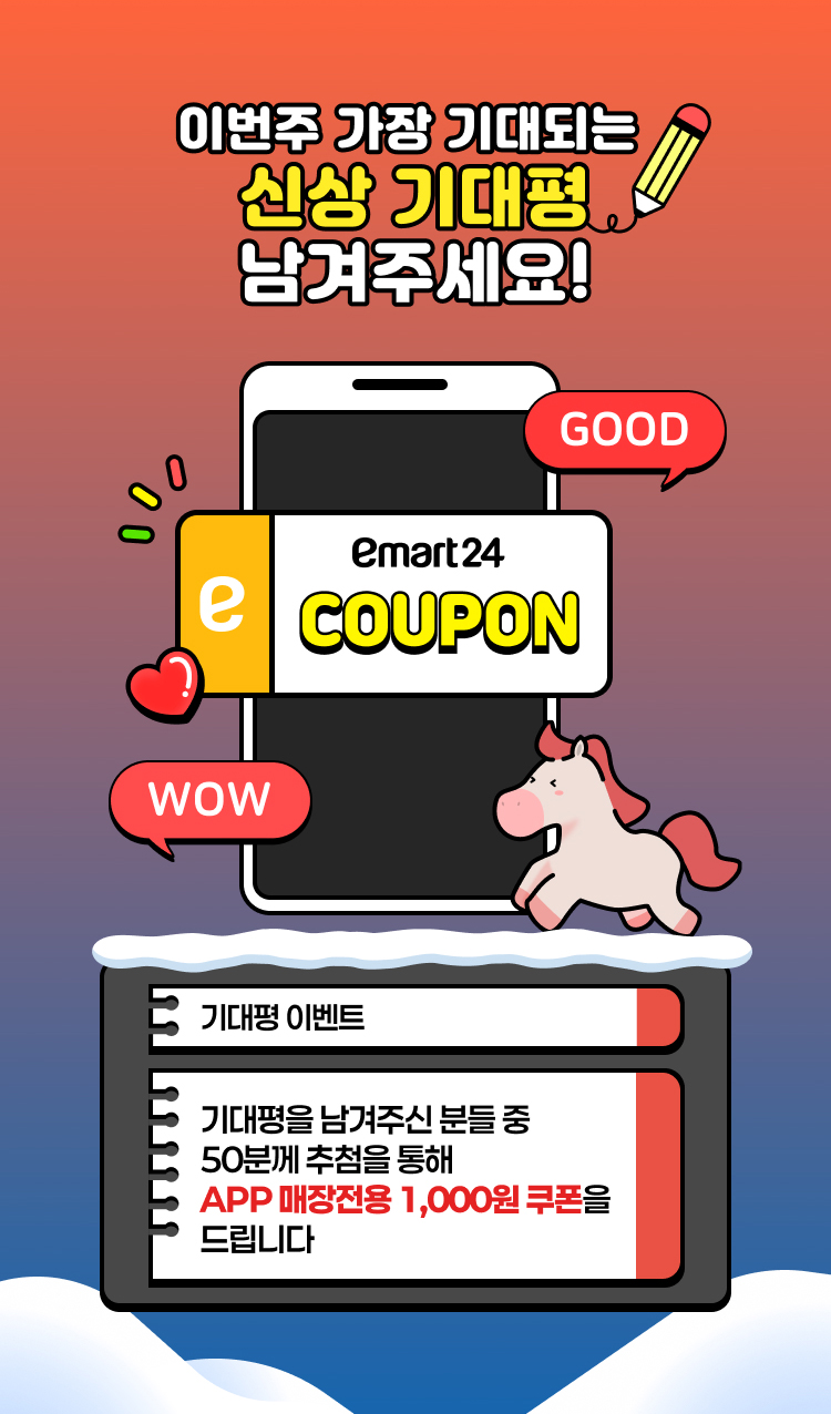 - 랜덤쿠폰 이벤트는 꽝, 특정 신상품 무료 쿠폰, 할인쿠폰 중 1개의 결과 내역이 노출됩니다.