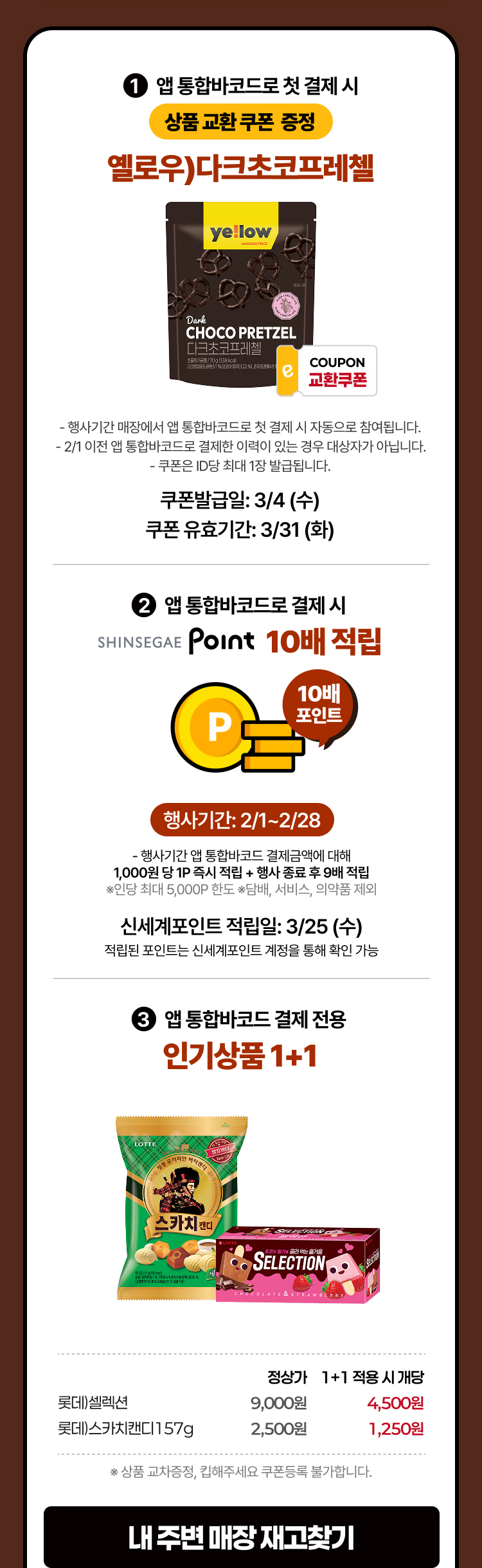 - 행사기간 매장에서 앱 통합바코드로 첫 결제 시 자동으로 참여됩니다.