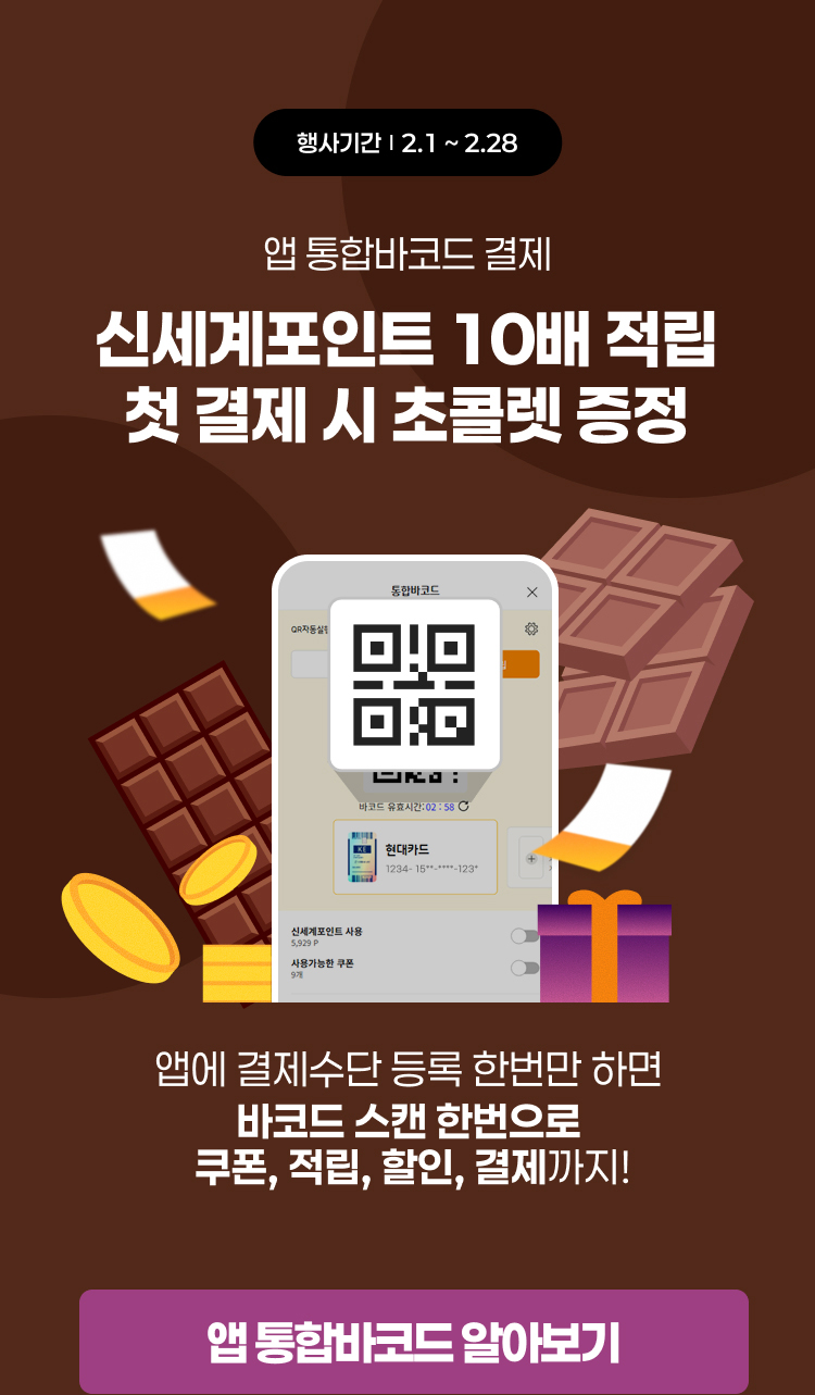 - 2/1 이전 앱 통합바코드로 결제한 이력이 있는 경우 대상자가 아닙니다.