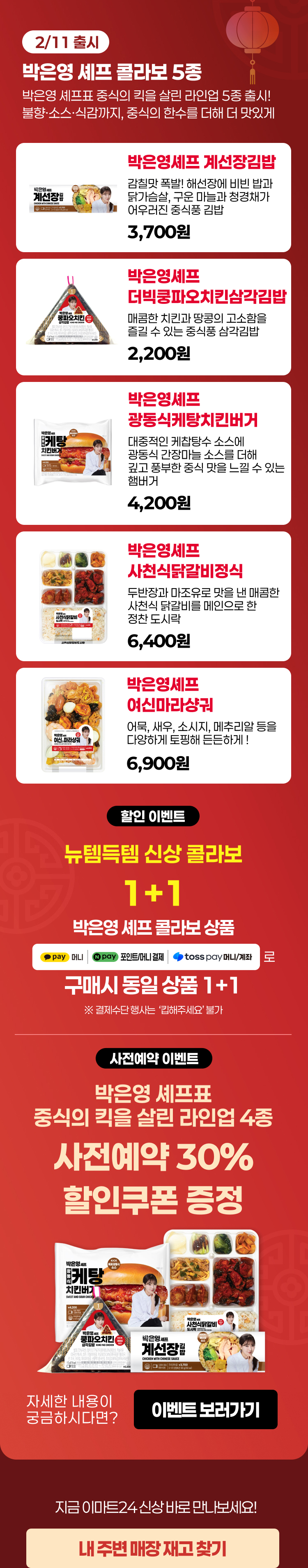 박은영 셰프표 중식의 킥을 살린 라인업 4종 사전예약 30% 할인쿠폰 증정