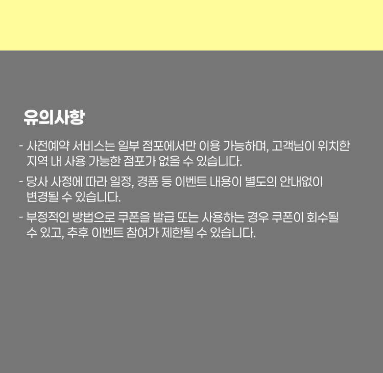 - 부정적인 방법으로 쿠폰을 발급 또는 사용하는 경우 쿠폰이 회수될 수 있고, 추후 이벤트 참여가 제한될 수 있습니다.